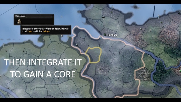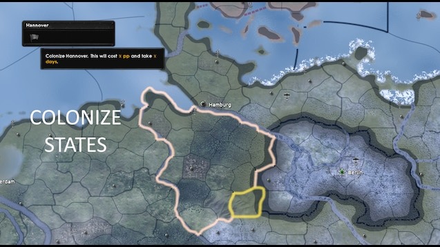 Процесс колонизации прост: выберите соседний или прибрежный регион с соответствующим значком в верхнем левом углу, чтобы превратить его в колонию. После этого необходимо нажать кнопку Integrate State, чтобы окончательно присоединить область.