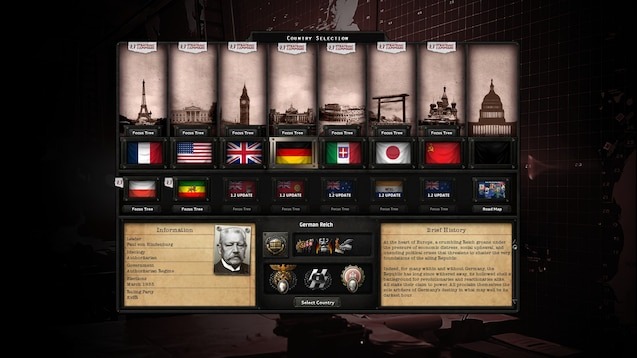 - Проработанные кампании для семи крупных держав: Великобритании, США, СССР, Германии, Италии, Франции и Японии, а также Эфиопии и Польши.