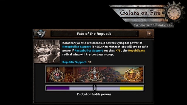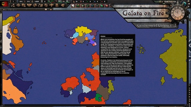 Galata on Fire — масштабный альтернативно-исторический мод для Hearts of Iron IV, переносящий игроков в уникальный мир Теллурии, где промышленная революция и политические амбиции сталкиваются в череде грядущих войн. Континент Галата стал центром технологического прогресса и военной мощи, но внутренние противоречия и старые обиды народов грозят обрушить этот хрупкий баланс.