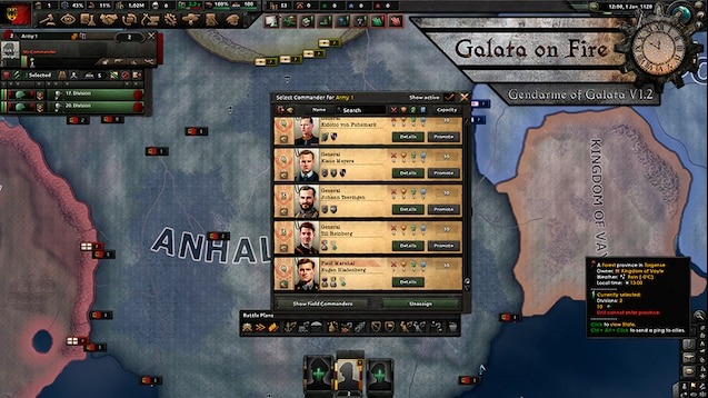 - Глубокая дипломатия и военные союзы — континент разделён на два враждующих блока: Луарское королевство и Анхальтскую империю, готовые начать масштабную войну за господство над Галатой.