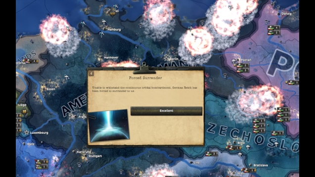 Orbital Bombardment — это радикальный и намеренно чрезмерный мод для Hearts of Iron IV, который добавляет в игру орбитальную бомбардировку как абсолютное оружие уничтожения. Он создан для тех случаев, когда классическая война, флот и даже ядерные удары уже не приносят удовлетворения, а враг продолжает бесконечные морские высадки и демонстрацию силы. Мод полностью ломает привычный баланс и превращает конфликт в тотальное подавление противника с орбиты.