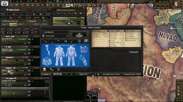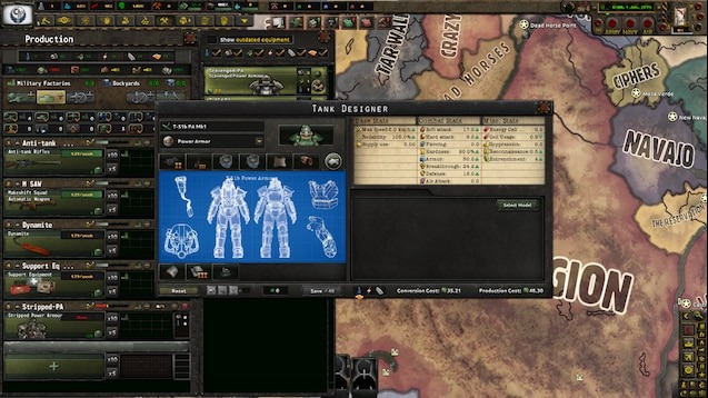 - Полная переработка силовой брони с использованием дизайнера танков Hearts of Iron IV