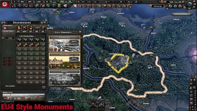- Механики в стиле EU4: добавлены возрастные эпохи, уникальные идеи и система монументов, делающие развитие стран более вариативным.