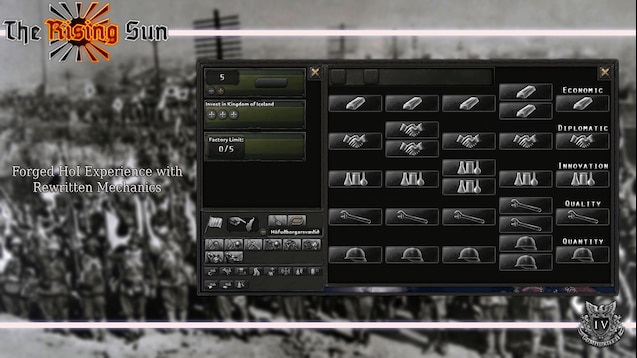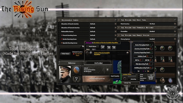 The Rising Sun — это подмод для Road to 56, созданный для более быстрого, сбалансированного и насыщенного игрового процесса в Hearts of Iron IV. Мод ориентирован на ролевую игру и мультиплеер, предлагая расширенные механики и удобные инструменты без ущерба для производительности. Благодаря оптимизированной структуре он стабильно работает даже при большом количестве игроков и подходит как для глубокого RP-сценария, так и для обычной совместной или одиночной игры.