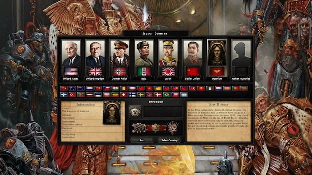 Мод сочетает атмосферу мрачного будущего Warhammer с механиками Hearts of Iron IV, создавая уникальный игровой опыт, где технология, вера и война сплетаются воедино. Игрокам предстоит возглавить зарождающуюся Империю и провести человечество через огонь и кровь к единству под знаменем Императора.